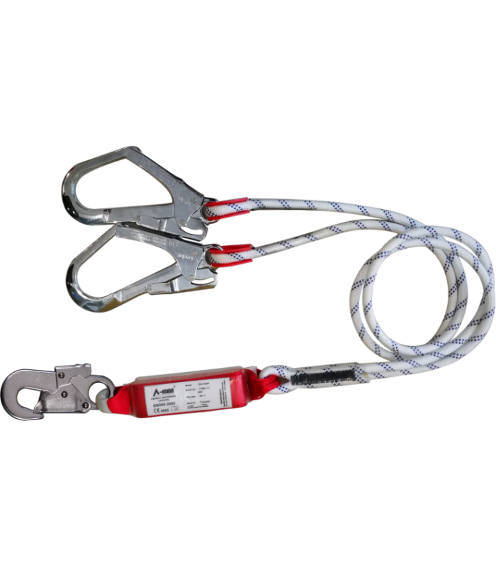 Kaheharulise polüamiidköiega amortisaator, amortisaatori otsas väike karabiin ja köie mõlemas otsas kaks suurt tellingukonksu. usaldusväärne absorbeerija. Toode sobib kasutamiseks kuni 10 aastat. Trossi pikkus on 2 m.