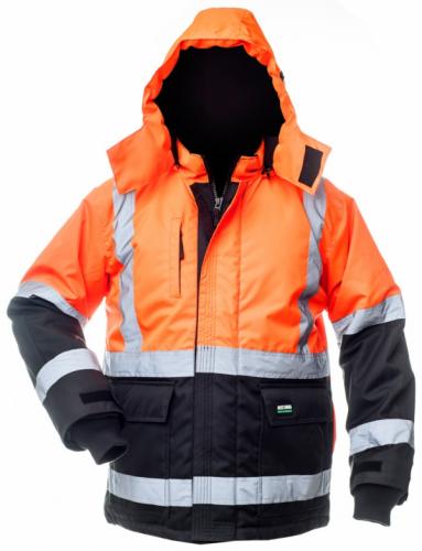 Eemaldatav kapuuts. Sisemised soojapidavad mansetid. 5 cm laiused helkurribad. Suured taskud.