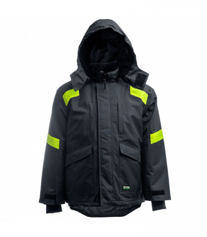 Soe, veekindel jakk elastse selja osaga, peegeldavate kangadetailidega. Jopel on eemaldatav kapuuts. Jope on valmistatud 300D Oxfordi kangast, mis on eriti vastupidav hõõrdumisele ja rebenemisele. Kangas oleva spetsiaalse PU-membraani tõttu on jope veekindel. Elastsed kätised võimaldavad liikumisvabadust ega piira neid. Fluorestsentskanga detailid asuvad õla piirkonnas, keskel ja jope all osas. Väga soe jope.