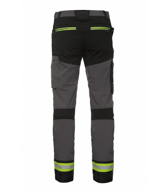 Need püksid on ainulaadsed, kuna need on valmistatud ülivenivast 4-Way Stretch kangast, mis tähendab, et need on ülivenivad ega piira liikumist. Dobby Weave kangas pükstele lisab suurepärast õhuringlust ja hingavust (Veeaurukindluse test R et = 2,8). Samuti on pükste tagaküljel, allservas, segmenteeritud, liimitud kaks helkurteipi, mis liikumist ei piira. Ees on kaks avarat kumerdatud taskut ja need on tagant lukuga suletavad. Pükste külgedelt leiad suured ja mugavad taskud, mis lisavad suurepärast mugavust, kuna saad kaasas hoida kõiki vajalikke tööriistu. Lisaks kõigele sellele on pükste paremal küljel aasad, kuhu mahuvad sinu lisatööriistad tööks. See mugavus on loodud nii, et tööriistad ei piiraks teie liigutusi, kui neid tasku sees hoida. Tension mudeli pükstes on põlvepiirkond tugevdatud CORDURA® kangaga, mis on ülimalt vastupidav kulumisele, rebenemisele ja hõõrdumisele. CORDURA® kangas pikendab Tension-pükste eluiga. Seestpoolt on võimalus sisestada põlvekaitse. Pükste allosas on topelttugi,